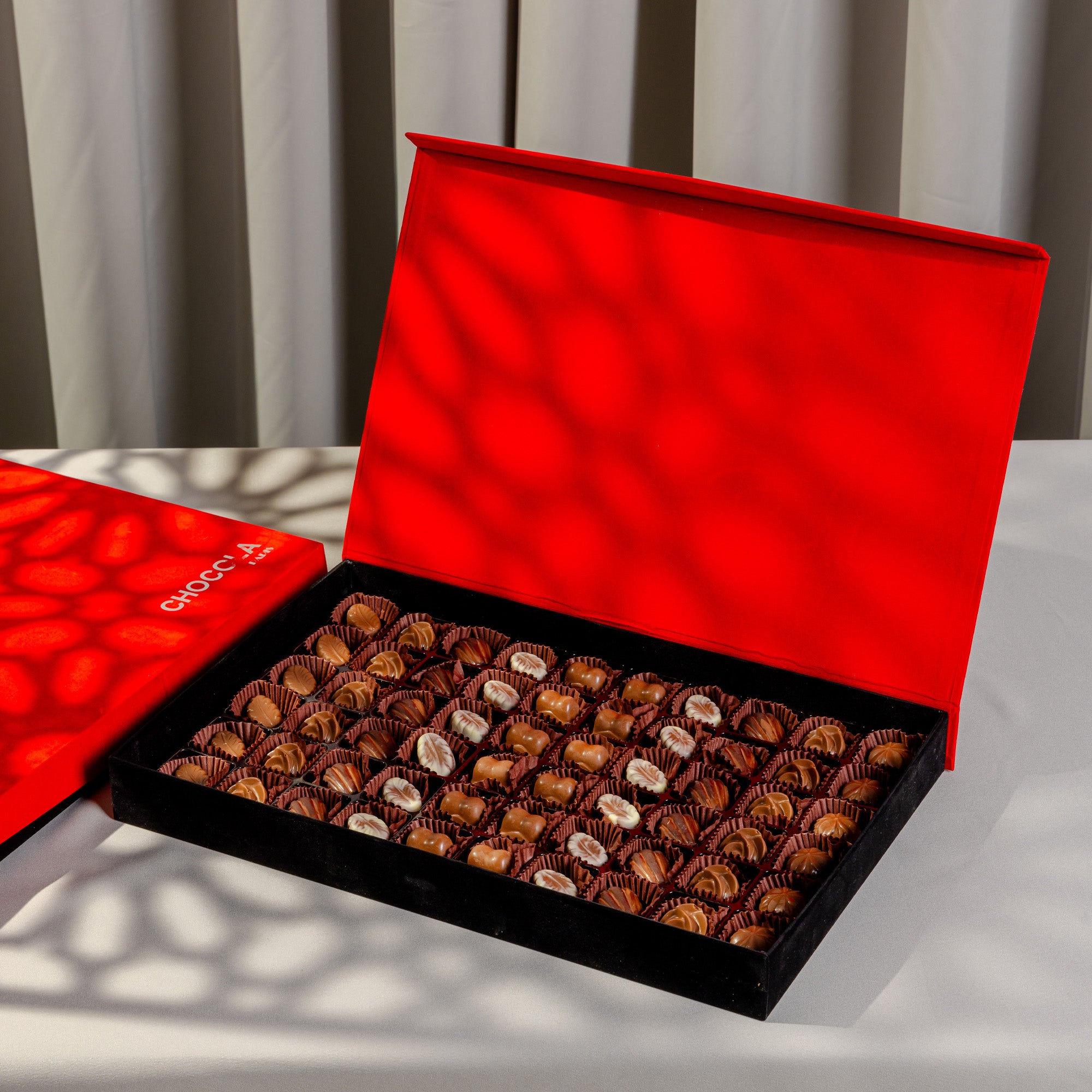 يمكنك العثور على الشوكولاتة البلجيكية الفاخرة في شوكولا باريس، أفضل متجر شوكولاتة في قطر، والذي يقدم صناديق وصواني ومجموعات هدايا فاخرة لكل المناسبات.
