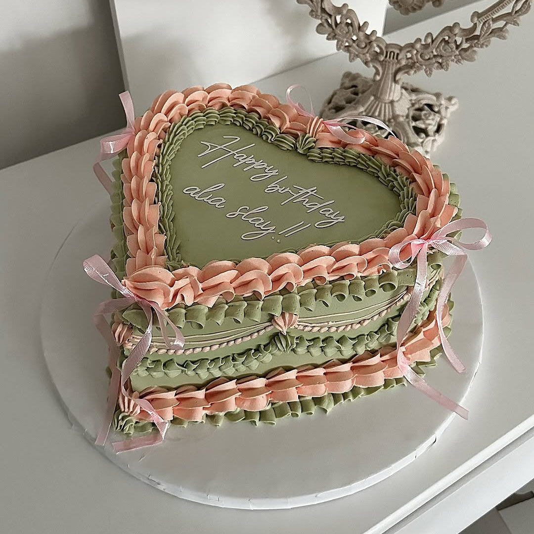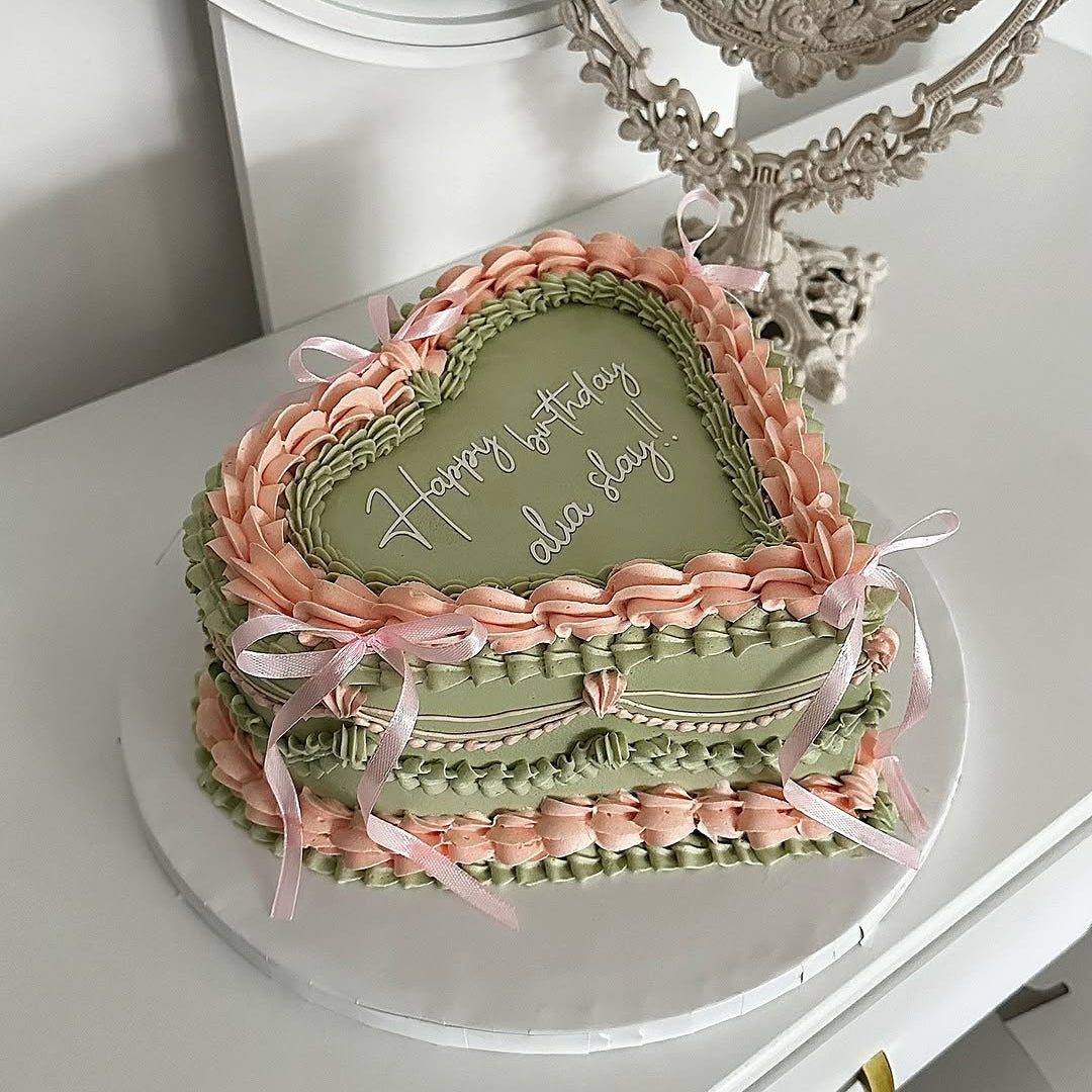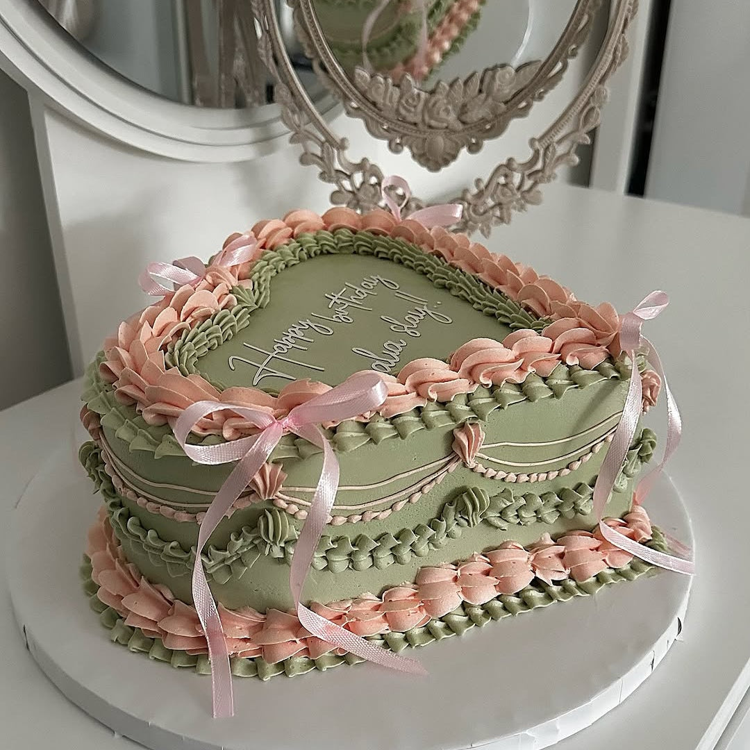 Green Meadow Ribbon Cake brings a fresh and calming vibe with soft green tones, floral accents, and delicate ribbon piping. A perfect pick for nature lovers, birthdays, and elegant celebrations. Light, beautiful, and full of vintage charm.